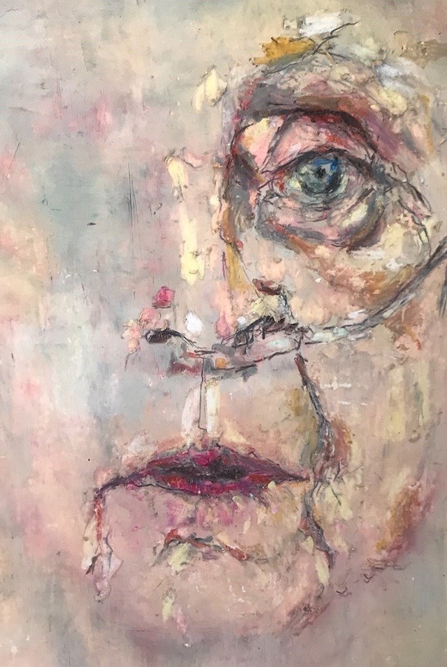 oil, oil pastel & pencil on cardboard 20" x 18" 2018
