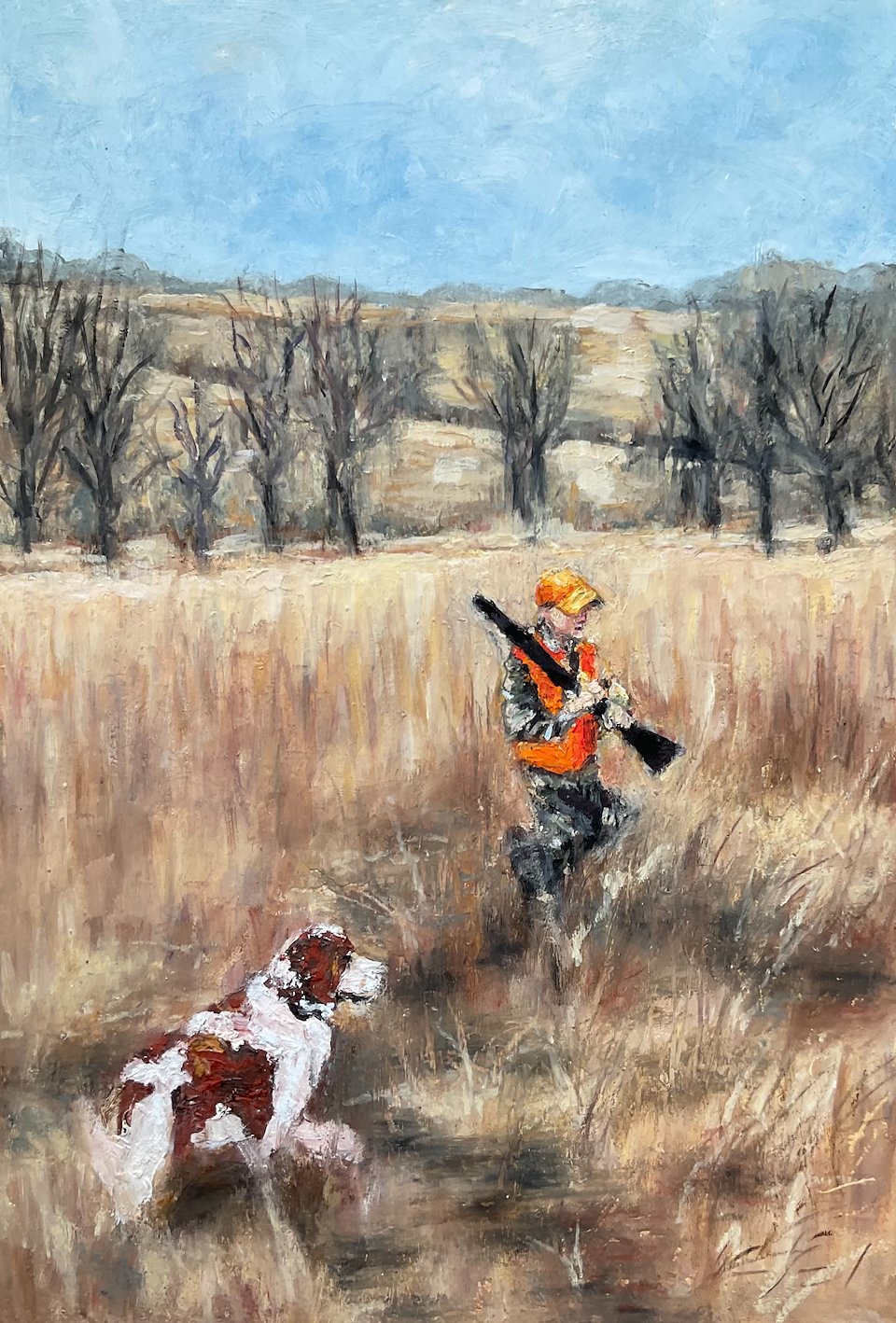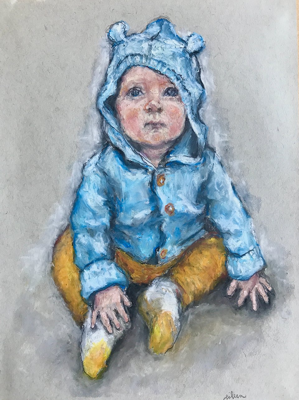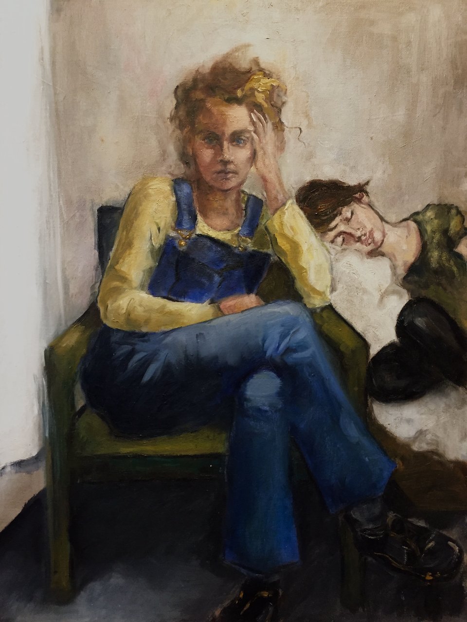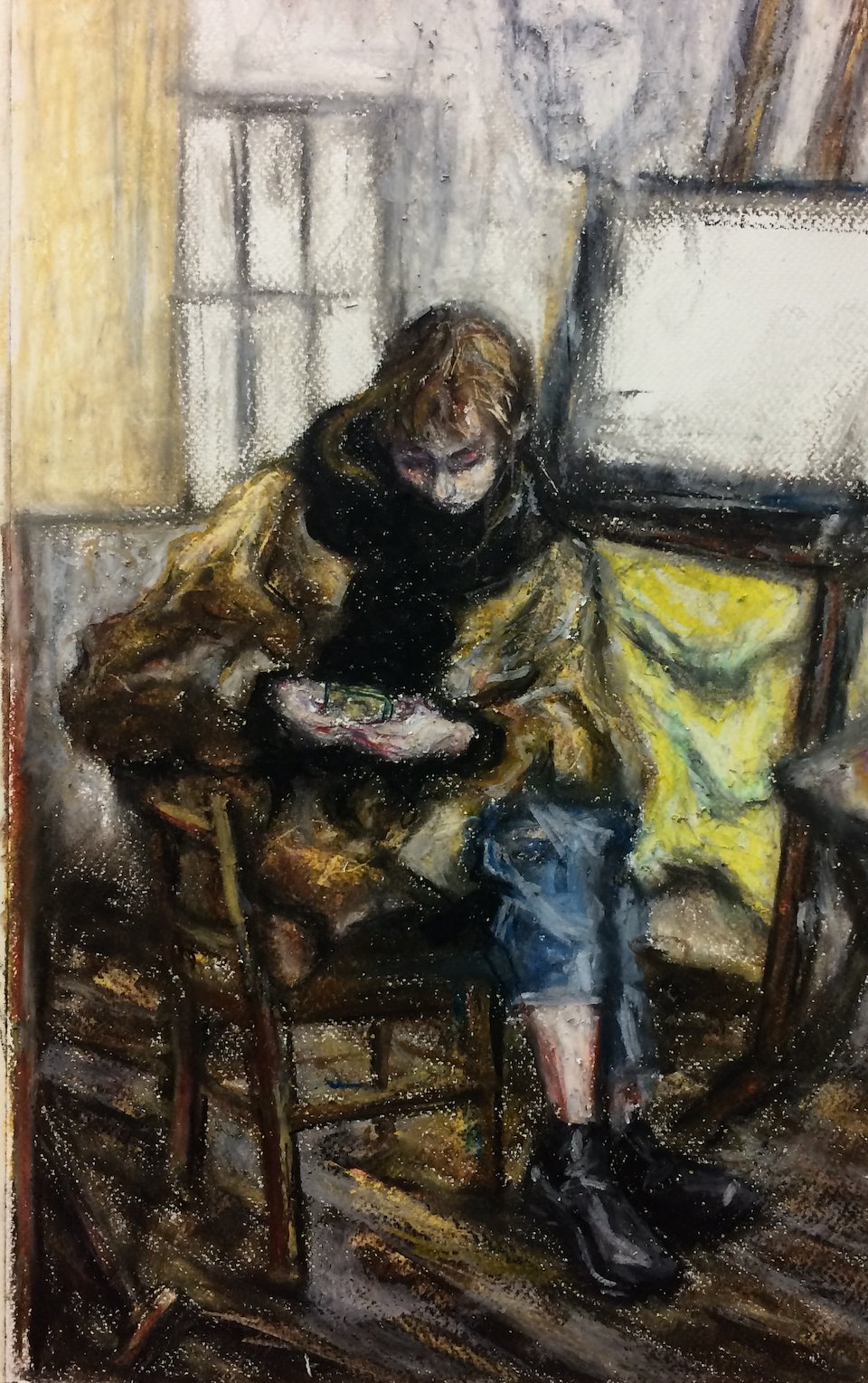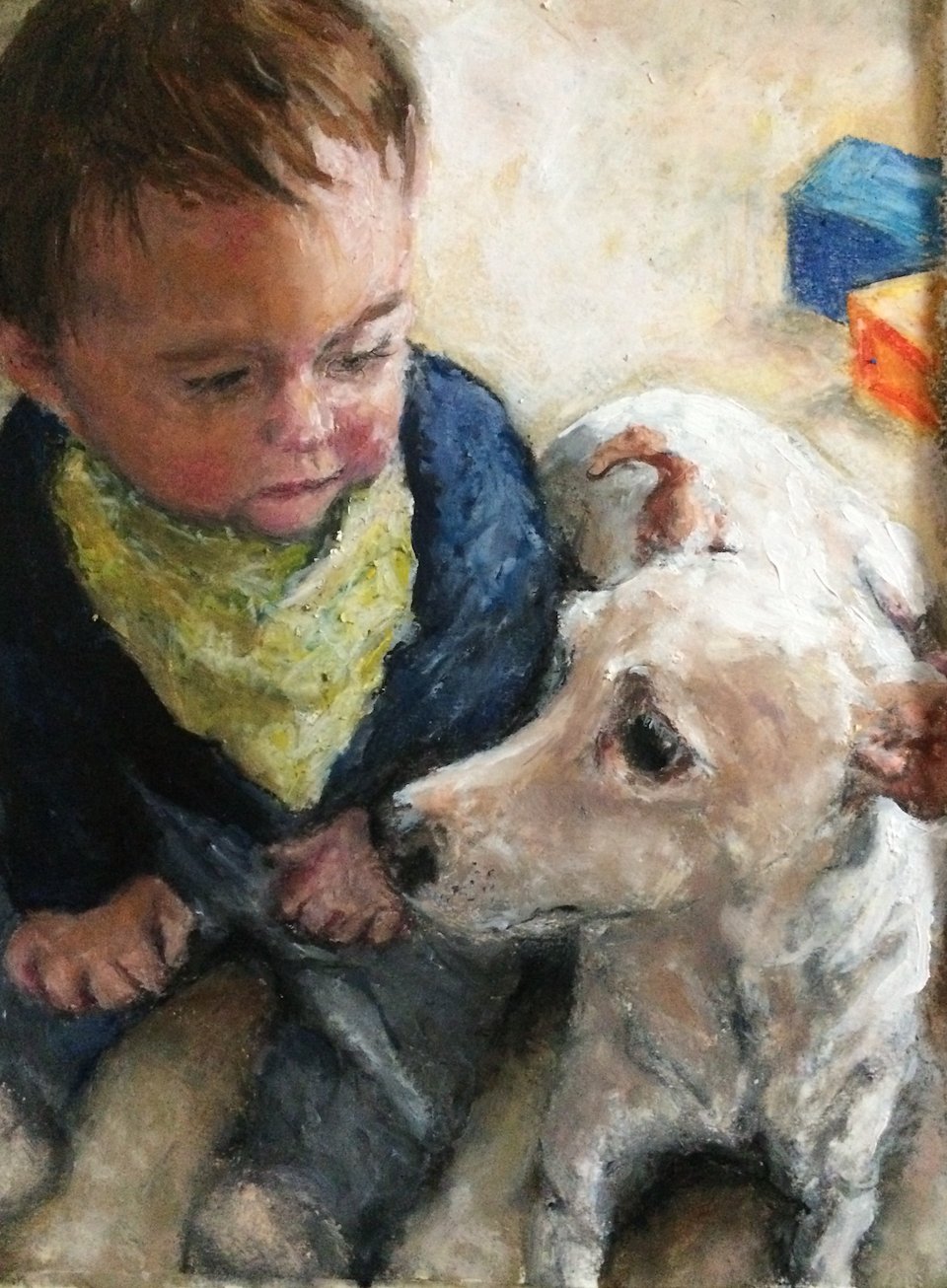 A boy and his dog oil & oil pastel on paper 12"x9" 2017